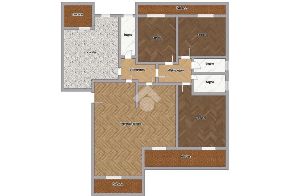 Le tre camere da letto garantiscono comfort e privacy, mentre i tre bagni offrono praticità e funzionalità. Quattro balconi circondano l'abitazione, permettendo di godere di spazi esterni privati.