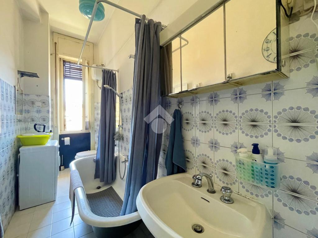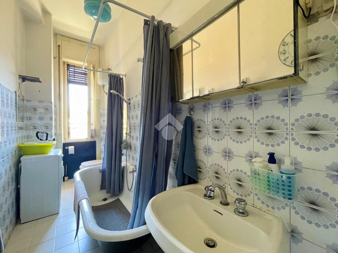 Si prosegue con un ampio soggiorno luminoso con accesso sul balcone collegato alla cucina, due camere da letto ed un bagno finestrato con vasca.