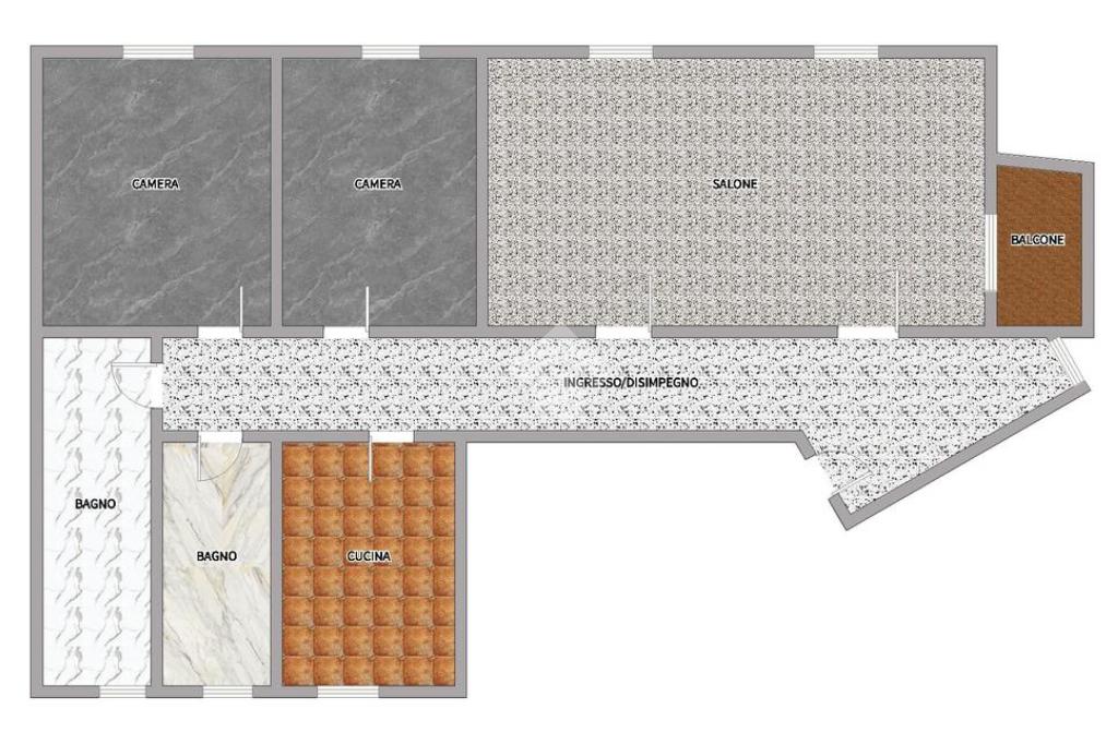 L'ingresso ci accoglie in un comodo disimpegno che ci conduce ad un ampio salone arricchito da un balcone, proseguendo troviamo una funzionale cucina abitabile, perfetta per chi ama cucinare e condividere pasti in compagnia.