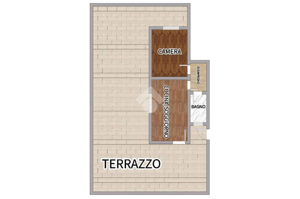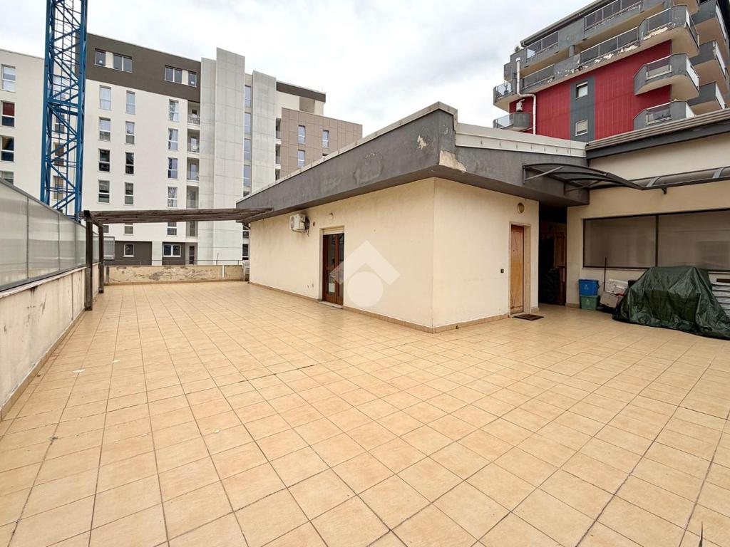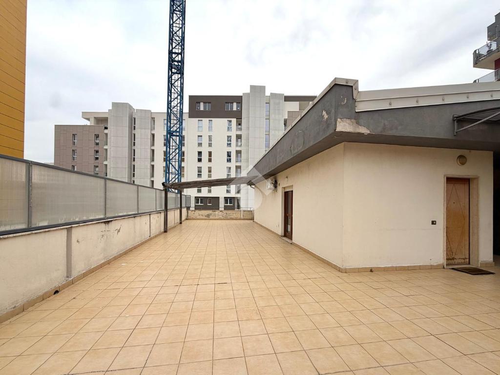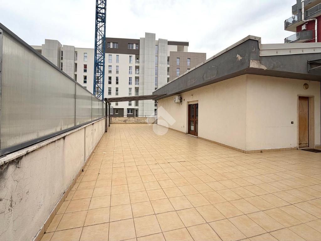 L'appartamento, posto al primo piano di un edificio dotato di ascensore, offre un ingresso semi indipendente che conduce ad un ampio open space cucina soggiorno che si apre su un terrazzo di circa 130 mq.