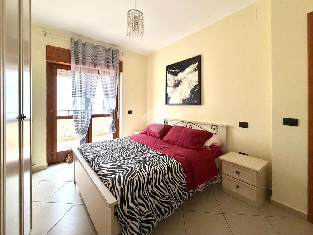 Nella zona notte trovimo una camera matrimoniale, anch'essa con accesso diretto al terrazzo, ed un bagno finestrato dotato di vasca.